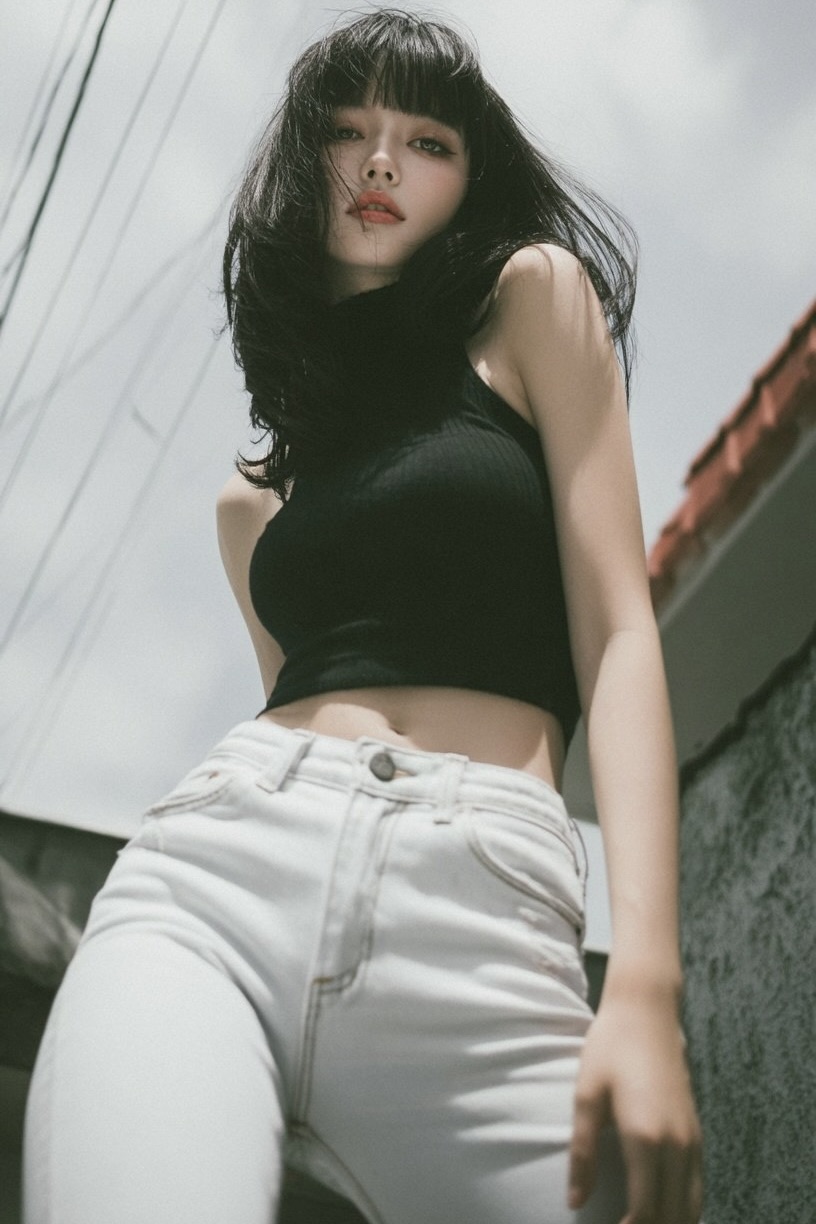 "text": "the woman in the picture puts her hands lightly on the back of her neck, her head and body make dynamic changes with the rhythm, showing dance or display-type movements, the overall posture is natural and rhythmic"